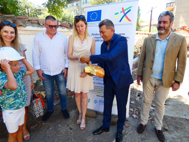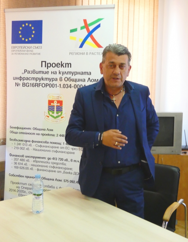 Със символична първа копка и лисване на менче с вода кметът на Лом д-р Георги Гаврилов официално даде началото на строителството по проекта „Развитие на културната инфраструктура в община Лом“.