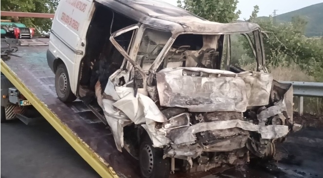 Огледите показват, че бусът с великотърновска регистрация, в който пътува само шофьор, губи управление и се врязва челно в идващия отсреща бус с работници от близката кариера.