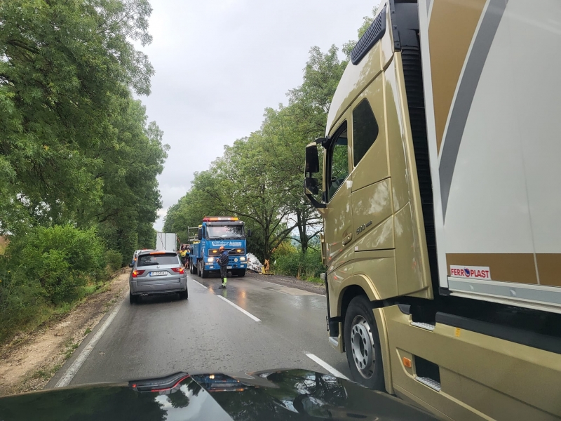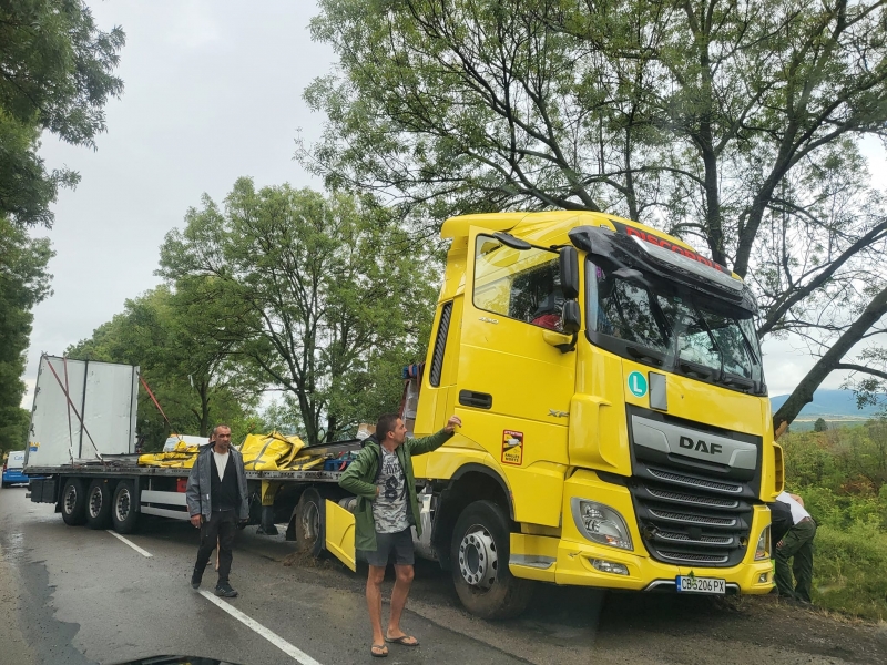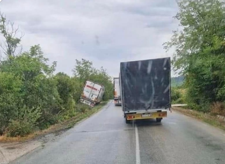 Заради падналия дъжд и несъобразената скорост ТИР е самокатастрофирал на международния път Е-79, след което се е завъртял край видинското село Ружинци.