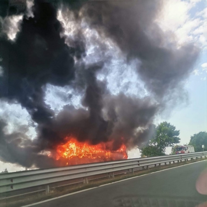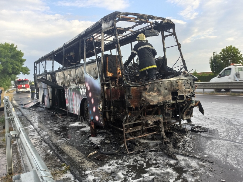 Пътнически автобус се е запалил край Бургас, по пътя за бургаския квартал Ветрен, срещу популярен магазин за играчки, дрехи и сувенири, съобщи "Флагман".