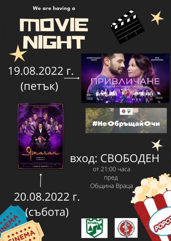 На 19 август, от 21 часа, пред сградата на Община Враца ще бъдат прожектирани филмите „Не обръщай очи“ и „Привличане“.