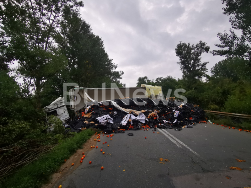 Пътният инцидент е станал по-рано днес, малко преди 7 часа. Тежкотоварната машина, която пътувала в посока "Дунав мост 2" и превозвала нектарини, се е обърнала в района на разклона за село Сумер. По неофициална информация шофьорът изгубил контрол над управлението, завъртял се на пътя и се обърнал.
