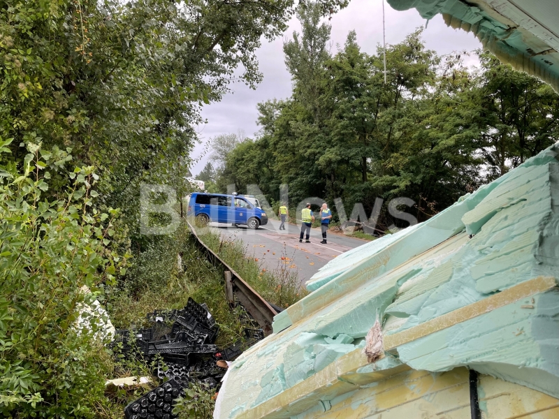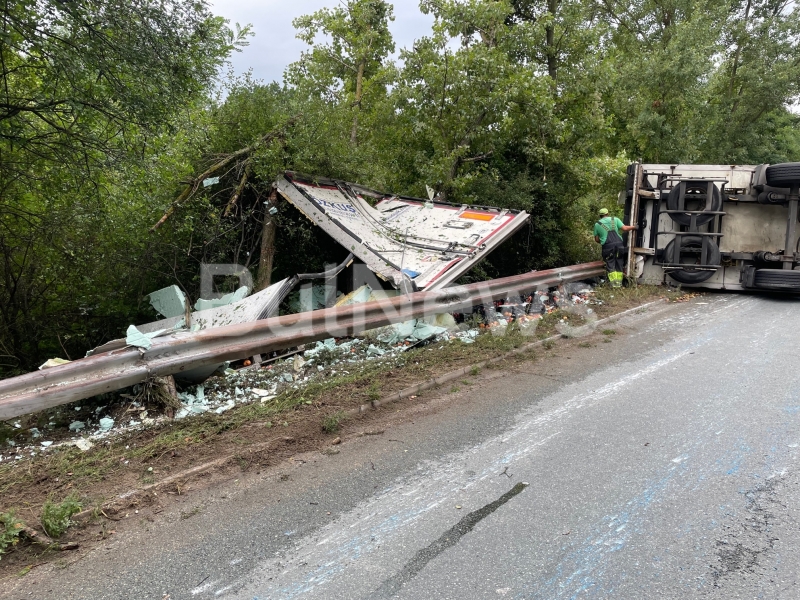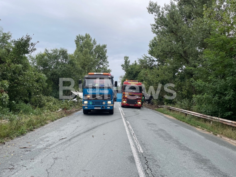Турски ТИР се обърна на международен път Е-79 между Монтана и Враца, видя само репортер на BulNews.