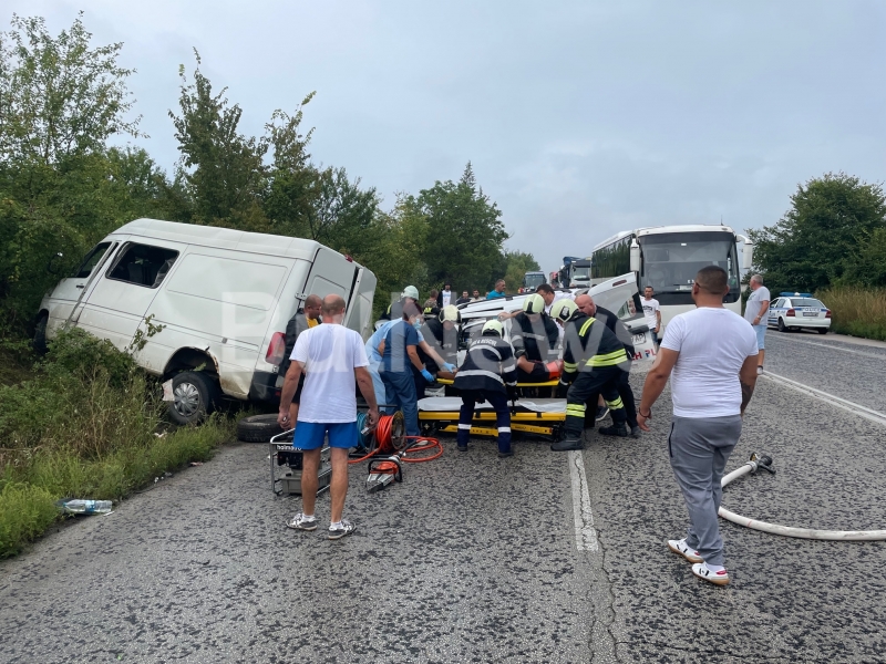 Заради тежкия инцидент движението в района е напълно блокирано. Очаква се до минути обаче да бъдат отворени две от лентите, където да се пренасочва трафикът от и към областния град.