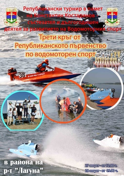 Провеждат Трети кръг от Републиканското първенство по водомоторен спорт в Лом, съобщиха от местната администрация. Той е в памет на Константин Костадинов - състезател и дългогодишен деятел за развитието на водомоторния спорт.