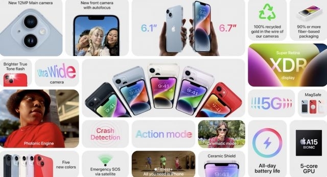 Подобно на Apple Watch, новите iPhone-и ще разчитат на усъвършенствана система за помощ при падане, катастрофа или друга злополука. Новата система също така разчита и на сателити, които да помогнат допълнително при нужда. Цените започват от 799 долара за iPhone 14 и 899 долара за iPhone 14 Plus. Поръчки се приемат от 9 септември, а първите доставки ще започнат седмица след това за iPhone 14 и 7 oктомври за iPhone 14 Plus.