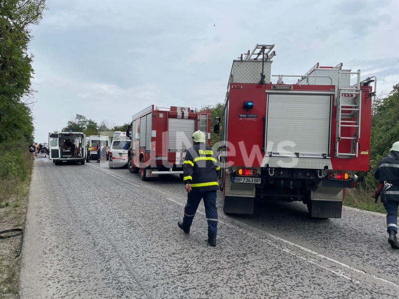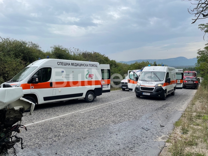 На местопроизшествието пристигнаха 5 линейки, две пожарни и полиция. Трафикът е блокиран, колони от автомобили чакат да преминат, а тези, които идват се пренасочват през обходен маршрут.