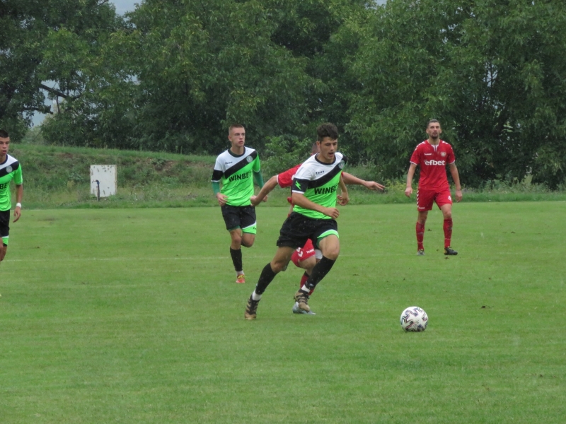 Само след 3 минути игра момчетата на Ивайло Димитров изравниха. Митко Панов даде хубав пас към Радослав Захариев, който се озова на изгодна позиция и пусна топката покрай вратаря за 1:1.