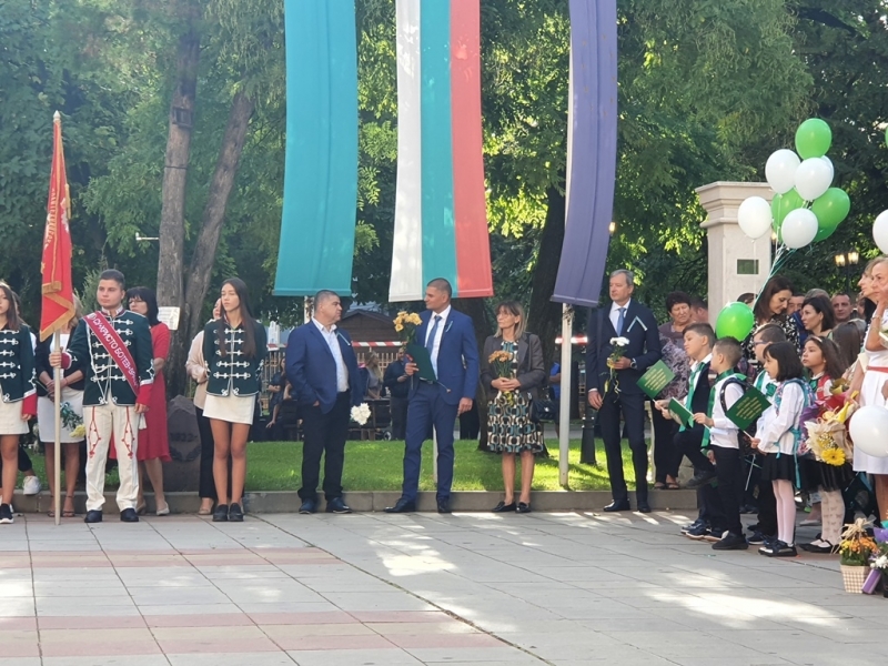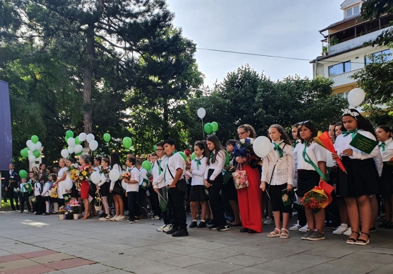 Ученици поднесоха цветя пред паметника на патрона на училището Христо Ботев. Програмата продължи с изпълнения на възпитаници на школото, които поздравиха съучениците си с песни и стихотворения.