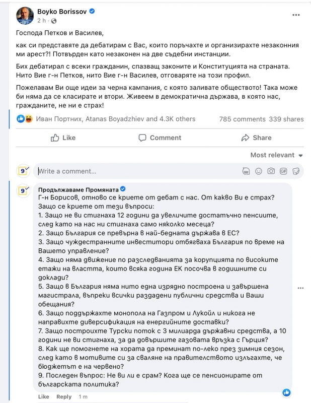 Вижте 9-те въпроса, от които Бойко Борисов избяга като отказа дебат с лидерите на Промяната: