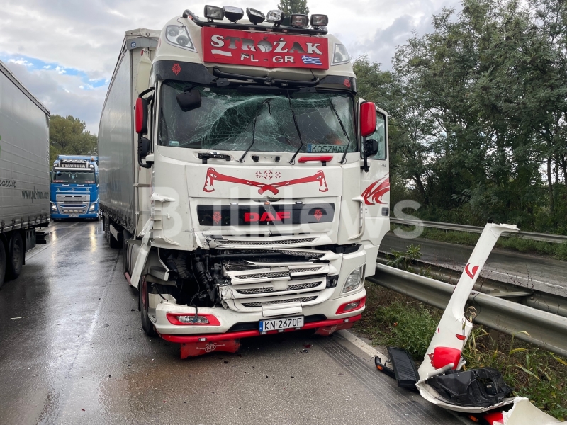 Инцидентът е от около преди час, след Моравица. След друго произшествие със загинал между две тежки машини на "Витиня", ТИР-овете са отбивани и водачите изоставали. Те карали с висока скорост, за да наваксат и заради мокрия път се стигнало до сблъсък. Ударили са се два български камиона и полски "ДАФ". На мястото има два патрула на полицията и нашенските ТИР-ове вече са изтеглени, но все още се очаква полският да бъде преместен.
