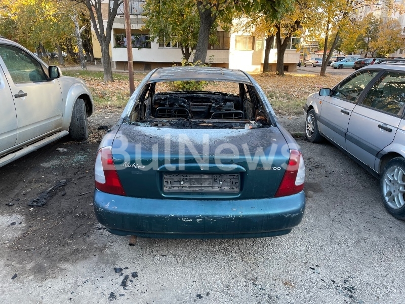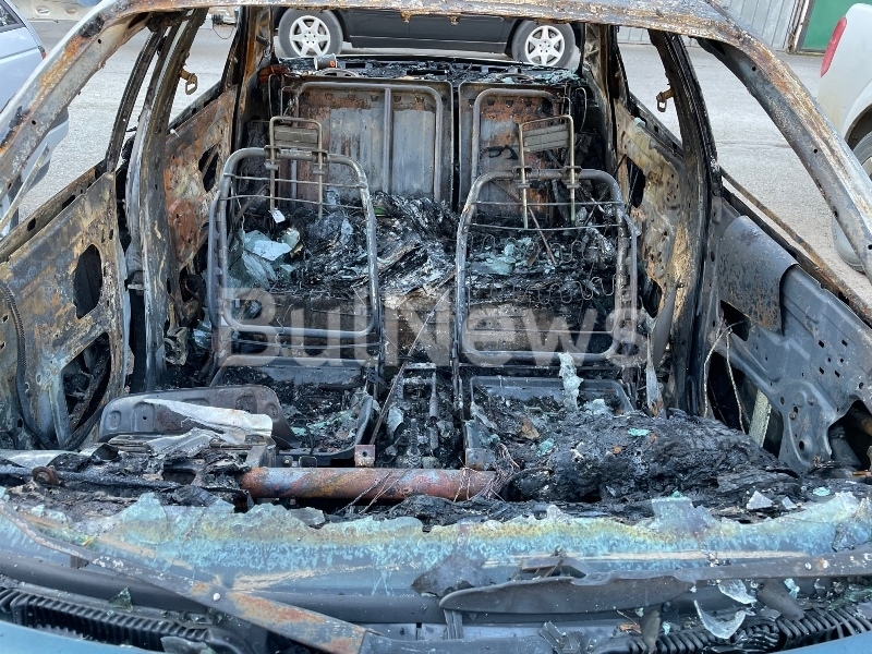 Тази сутрин на местопрестъплението е само „Daewoo”-то. Колата е напълно унищожена от огнената стихия. Другите два засегнати автомобила вече са преместени.