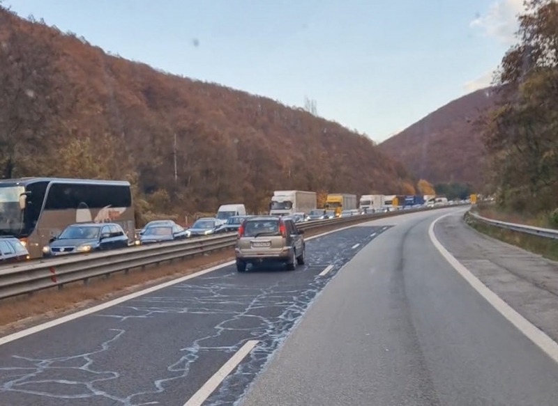 Тепърва на мястото ще пристигнат полиция и пожарна, което допълнително ще забави отпушването на колоната.