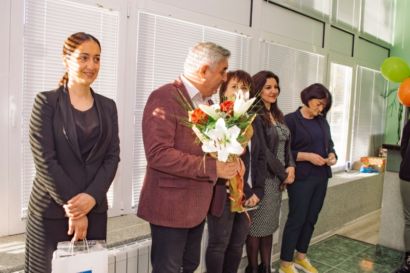 От името на Община Мездра Аспарухов подари на екипа на Центъра за административно обслужване икона на Св. Георги Победоносец, букет цветя и по едно портмоне с логото на общината.