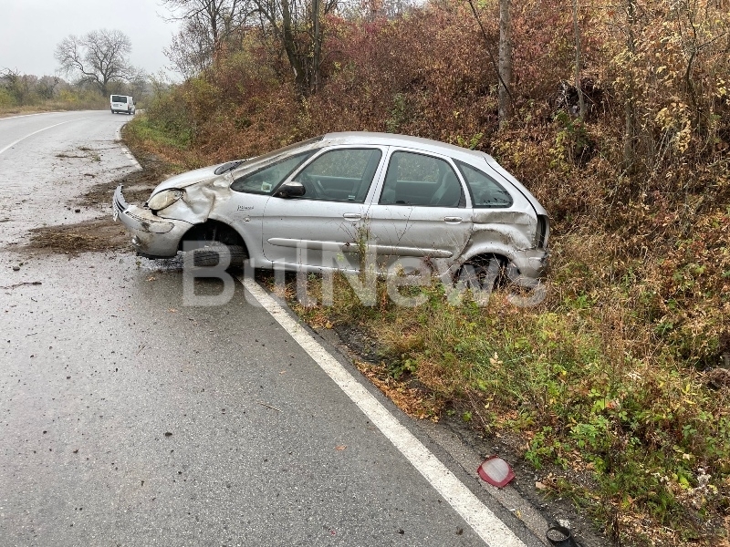 Нова жертва на дъжда! "Ситроен" се размаза на Криводолско шосе, трафикът е затруднен /снимки/