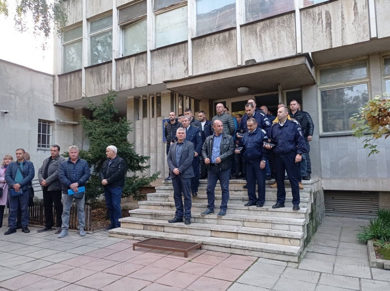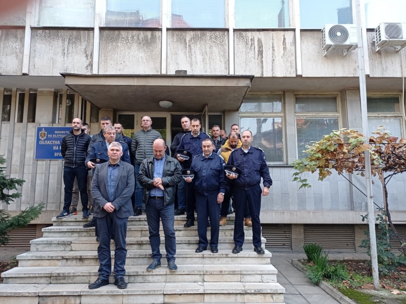 Преди минути пред областната дирекция на МВР във Враца униформените запазиха минута мълчание и сведоха глави пред паметта на 32-годишния Петър Бъчваров. Вой на сирени от служебен автомобил огласи центъра на Враца по време на мероприятието.