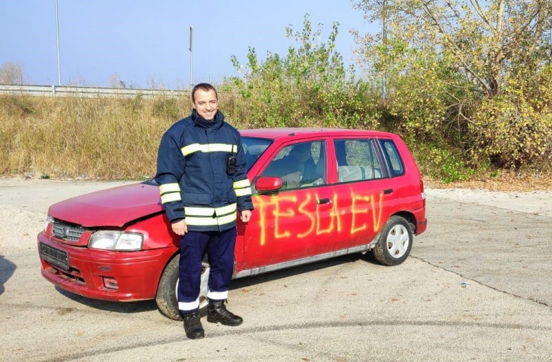Огнеборците извършват необходимите дейности по разузнаване и обезопасяване на превозните средства и спасяване на пострадалите. Екипът на аварийно-спасителния автомобил разгръща хидравличния комплект за изваждане на заклещеният пътник. Екипите на РДПБЗН - Видин установяват, че автомобила, в който има заклещен човек е електрически - “Tesla - Model 3”. Последва оглед и определяне на броя и разположението на акумулаторите, панела с литиевойонните батерии и електрическите двигатели, както и прекъсване на високоволтовите елементи на определените от производителя на автомобила места – зони за срязване, маркирани с червен-оранжев цвят и залепен етикет.