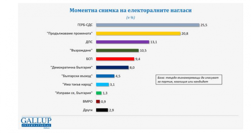 „Галъп”: Ако изборите бяха днес, ГЕРБ печели вота, ПП - втора политическа сила