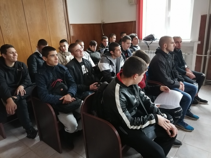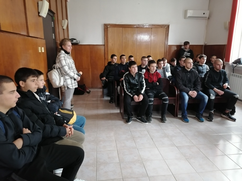 Първа беседа от новата инициатива на Районен съд – Враца - „С повече внимание и отговорност на пътя - животът е ценен“ се проведе вчера. Участие в нея взеха ученици от профилираната паралелка „Автомобилна мехатроника“ на Професионалната техническа гимназия „Н. Й. Вапцаров“ – Враца. Изборът точно те да дойдат в съда не беше случаен, защото в края на своето обучение, ще получат свидетелство за правоуправление на МПС, категория „В“. С учениците бе техният класен ръководител Николай Златев и училищният психолог Диана Конецовска.