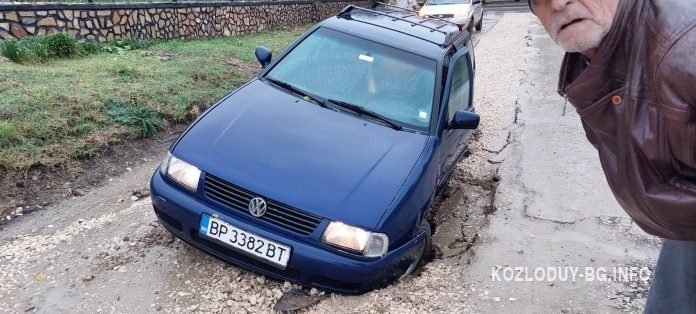 Кола пропадна в дупка на улица в Козлодуй, съобщава сайтът кozloduy-bg.info.