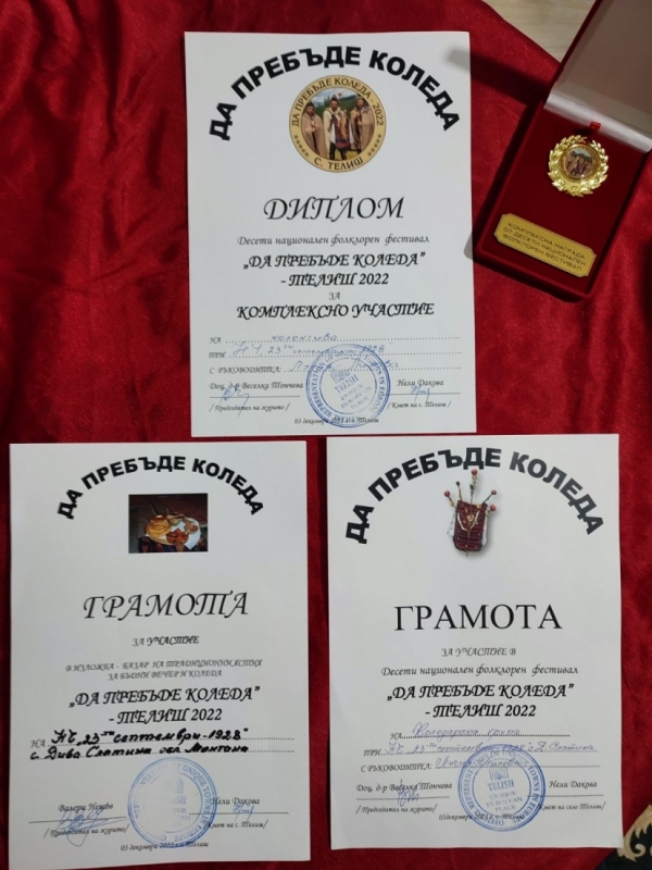 Голям успех постигнаха самодейците от горнодамяновското село Дива Слатина на фестивала "Да пребъде Коледа" в село Телиш. Те спечелиха първо място в комплексното класиране и получиха грамота и плакет от 10-ото юбилейно издание. С първо място беше отличено и тяхното традиционно ястие - пълнени чушки с картофи в кулинарния конкурс.
