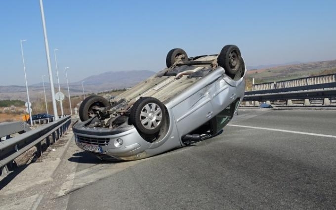Кола с украинска регистрация, управляван от 40-годишна украинка, поради движение с несъобразена скорост, катастрофира, блъскайки се в пътен знак и преобръщайки се по таван.