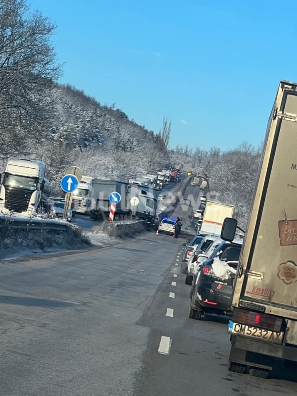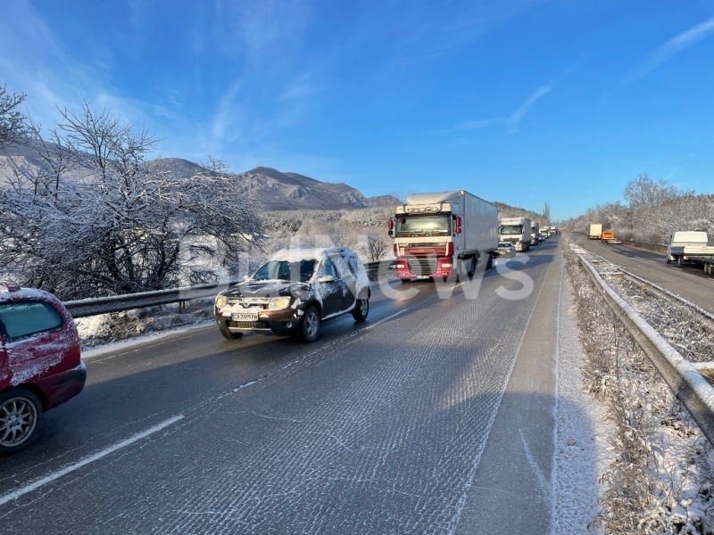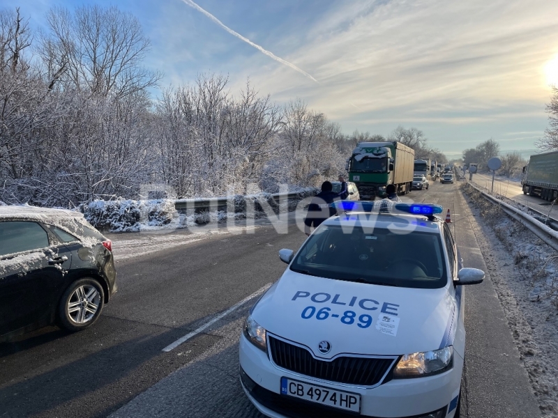 В момента камионът заема левите ленти и в двете посоки, което ограничава нормалното движение. Задръстването в посока Дунав мост 2 е до Мездра, а към железничарския град тапата е по-малка.