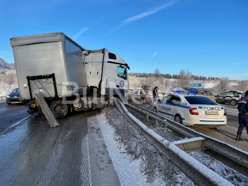 От последните минути! ТИР се завъртя на Е-79 между Враца и Мездра, линейка лети към болницата /снимки/
