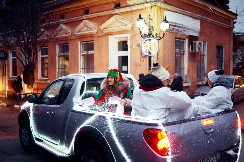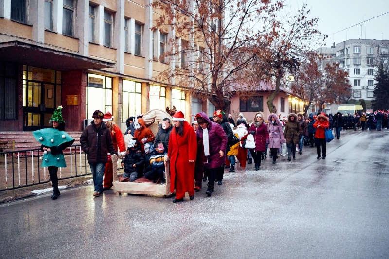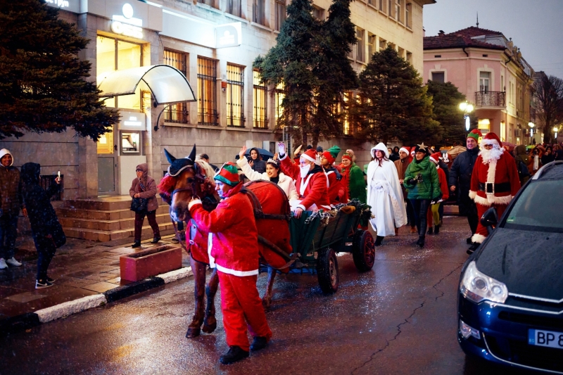 С колоритен дефилир под първият сняг за Оряхово тази зима от площад „1300 години България“ през улица „Васил Левски“ до площад „Дико Илиев“ образователни и културни институции, общински служители и граждани дадоха началото на тази, така любима на малки и големи празнична вечер. Дядо Коледовци на велосипеди, светещ и пеещ „Пикап“ с елфи и снежни човеци, които пръскат сняг, животинките от Дядовата ръкавичка, Библейска картина с Дева Мария и Йосиф, Снежанка в кола, безброй джуджета на СУ „Христо Ботев“, елхи, коледни духчета и ходещи подаръци, снежинки и ангели, оркестранти превърнаха площада на града в истинска зимна приказка.