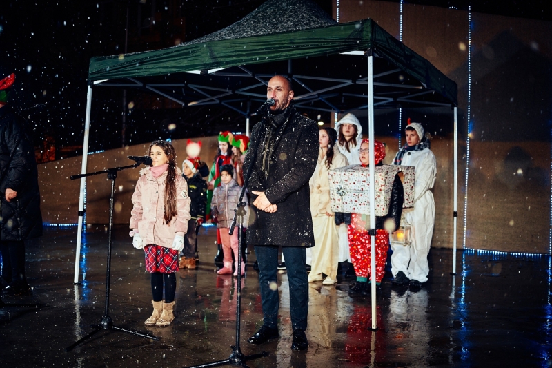 С прекрасните думи от стихотворението „Песен за доброто“ на Недялко Йорданов в изпълнение на учителя от СУ „Христо Ботев“ Марко Кръстев и неговата 8-годишна дъщеря Моника Кръстева, кметът на Оряхово Росен Добрев запали светлините на голямата, жива елха в центъра на града. С това не за първи път показа, че светлина и хармония, смисъл и надежда носят добрите човешки взаимоотношения, духовният напредък и споделянето на общи радости в делниците и празниците на общината.