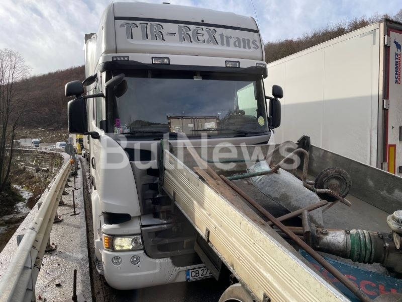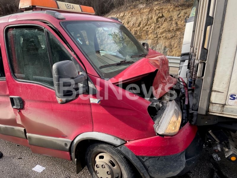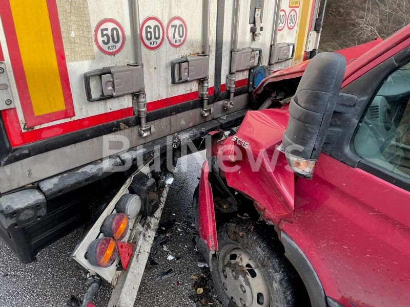 За щастие няма тежко пострадали хора, с рани е водачът на камиона и пътник, седящ до него, но те са прегледани от спешни медици и са на мястото на катастрофата.
