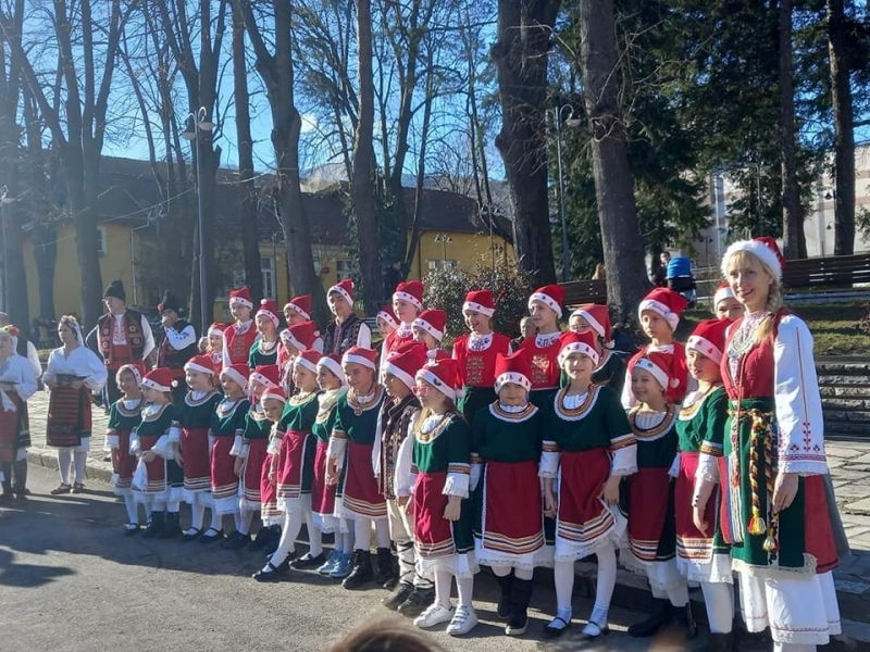 Коледари от 1.ОУ "Н.Й.Вапцаров" наричаха за здраве, късмет и берекет и представиха етюд "Коледен благослов".