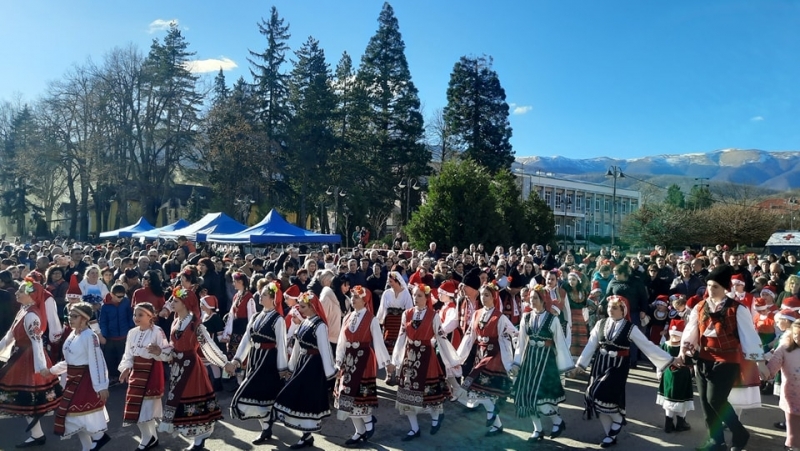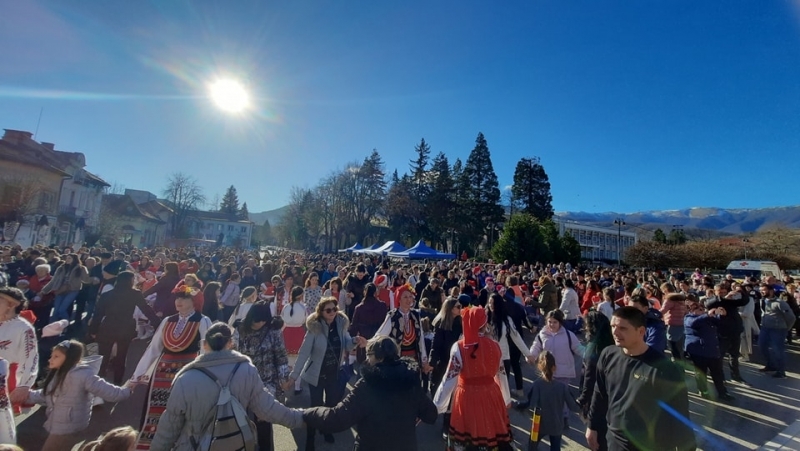 Пъстри хора, красиви носии, невероятна енергия и празнично настроение обединиха всички в един магичен кръг. Заедно ръка за ръка, танцовите състави споделиха радостта от празника и поведоха хорото.