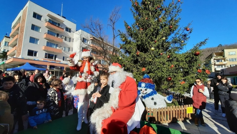 Акцент в програмата бе пристигането на Дядо Коледа, който намина над красивия град в голям въздушен балон. След успешното кацане, пристигна до елхата на мотор където нетърпеливо го чакаха Снежанка и децата. Те пяха, рецитираха стихове и споделиха моменти от празниците с близките си хора и разбира се съвсем заслужено получиха подаръци от добрият старец. Дядо Коледа раздаде на малчуганите над 200 подаръка, осигурени от Община Берковица.