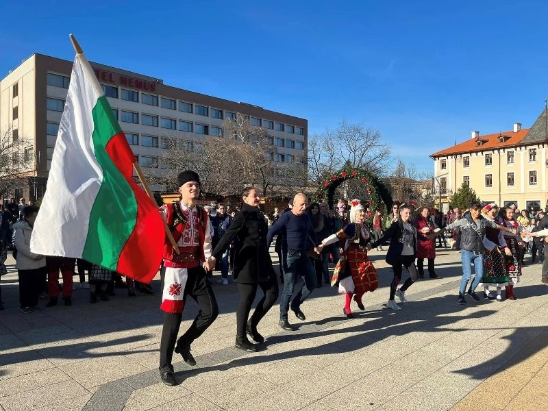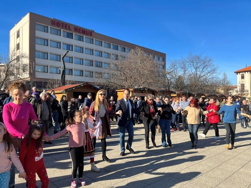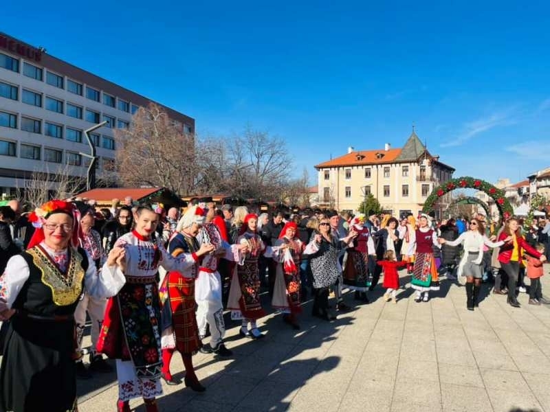 Празничната програма на площад „Христо Ботев“ продължи със сурвакарски наричания и български хора, конкурс за „Най-красива сурвачка“ и раздаване на курбан за здраве и благополучие.