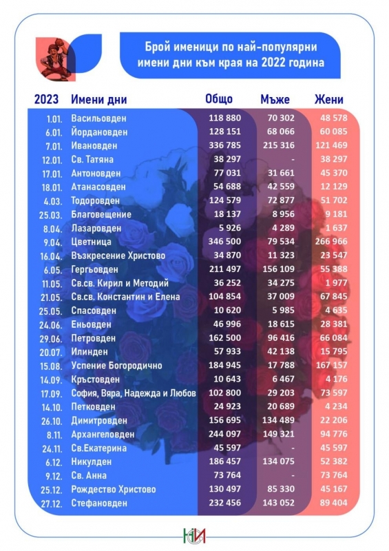 Ето и Топ 3 на най-популярните имени дни към края на 2022 година:
