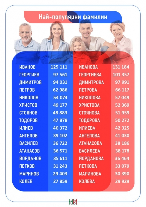 Сред най-популярните фамилии у нас са Иванови, Георгиеви, Димитрови, Петрови и Николови.