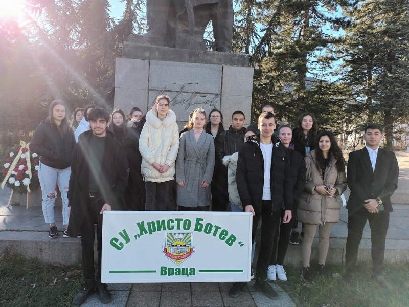 Учениците от историческата паралелка в 10 клас на Средно училище “Христо Ботев“- Враца, с ръководител Красимир Богданов взеха участие в общоградското тържество, което се проведе пред паметника на поета-революционер на едноименния площад във Враца.
