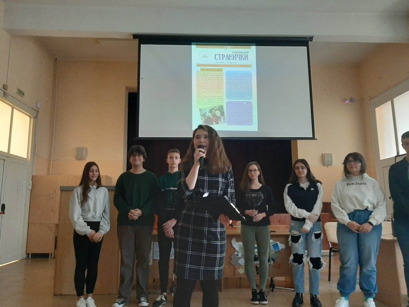 Учениците от клуб „Млад журналист“ представиха първи брой на вестник „Училищни странички“.