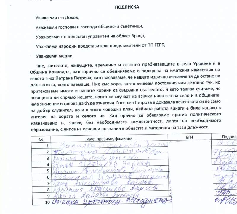 Фрапиращото в Уровене е, че уволнената Петрана Петрова е от създателите на партията и основен двигател по време на избори. Това обаче не е спряло кметът на Криводол да й „вземе главата“ като част от масовата чистка на хора от ГЕРБ.