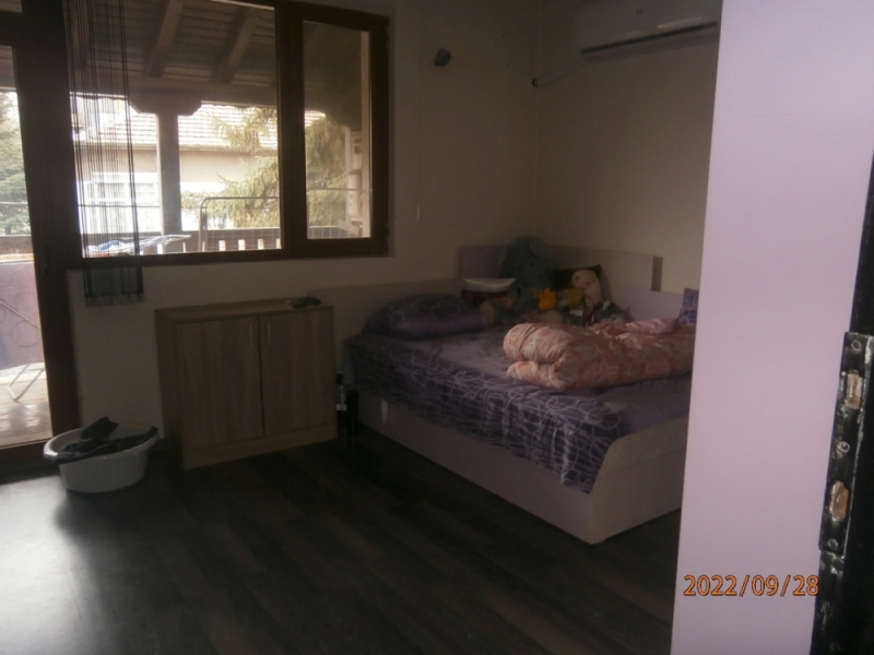 На първото ниво има стая, хол, кухня и сервизно помещение. Имотът се търгува заедно с ¼ от общите части на сградата и от правото на строеж върху мястото.