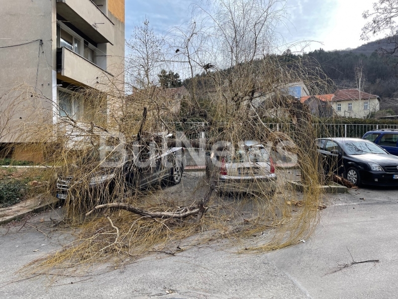 Злополуката е станала на улица „Речка“. Стъблото на върба се прекършило и големият дънер се стоварил върху два паркирани автомобила - „Ситроен“ Ц3 и „Хюндай Санта Фе“.