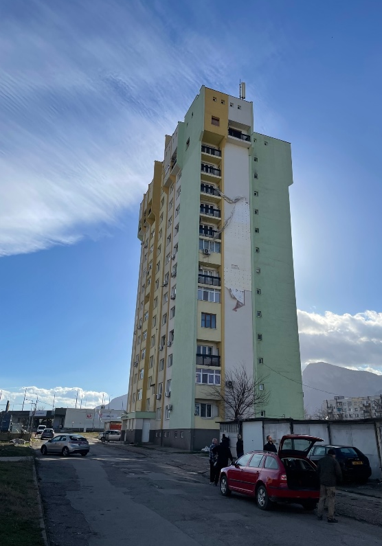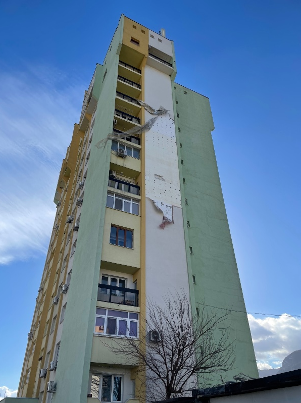 Преди минути от блок №54 в ж.к. „Дъбника“ е започнала да пада изолацията. Сградата е санирана преди 3-4 години по национална програма. В момента пред блока са се събрали живущи, които с ужас гледат как хвърчат мазилка и мрежа от некачествено направената изолация.