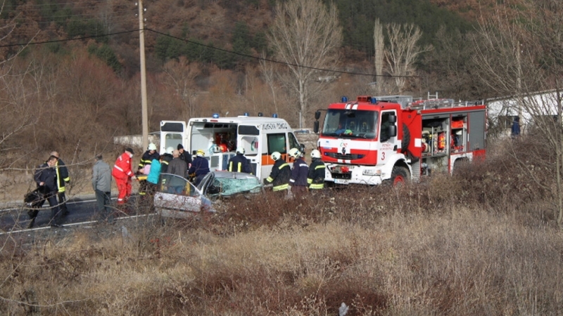 Тежка катастрофа на пътя между Благоевград и Симитли. Челно са се ударили лек автомобил и камион. Починала е жената, шофирала колата.