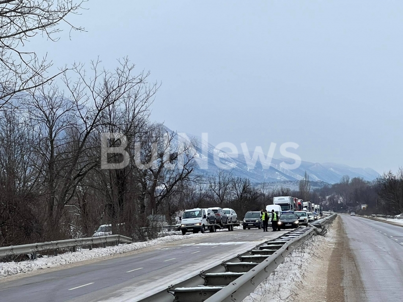 Образувало се е огромно задръстване. Пътят е затворен вече близо два часа, а екип на "Пътна полиция" пренасочва трафика през Моравица. Очаква се да остане така още поне час.