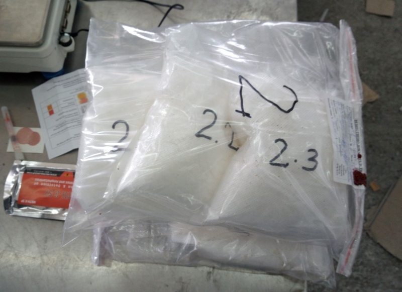 След направен полеви наркотест инспекторите установяват, че веществото реагира положително на метамфетамин. Общото задържано количество метамфетамин е 3 608 грама.