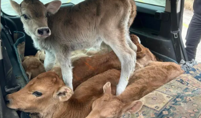 Полицията в Сливен спря шофьор, който е превозвал седем телета в задната част на лек автомобил. Животните са хвърлени едно върху друго и са били полузадушени.