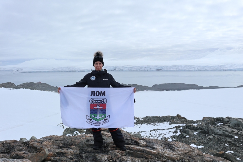 Нашенката е част от последната група на експедицията, която замина на 11 февруари. Тя пристигна на о. Ливингстън преди дни и сподели в личния си профил във фейсбук кадри как развява знаме с герба на Лом в ледената пустиня.