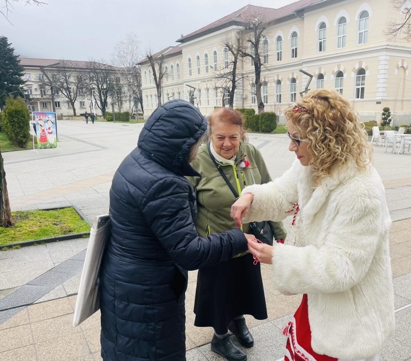 Заедно с традиционния български символ на пролетта, жителите на града получиха и пожелания за здраве и дълголетие.