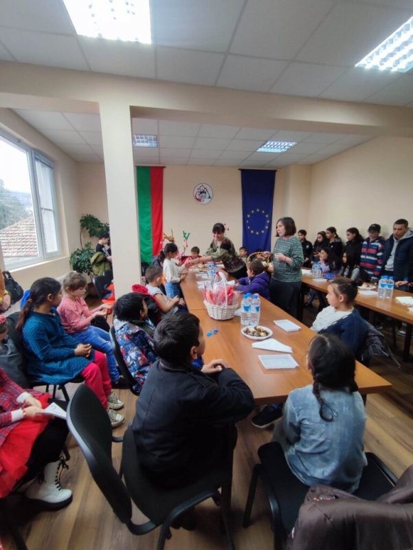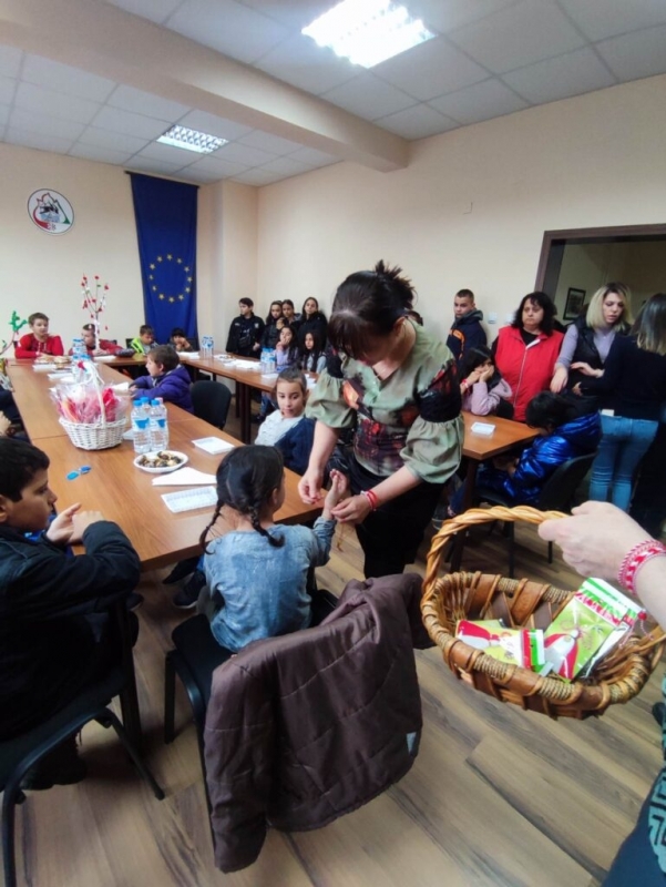 Момчетата и момичетата им завързваха гривни от преплетени бели и червени конци, собственоръчно направени от тях, и така символично пренесоха духа на празника в общината.